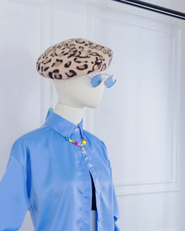 La Boina Print Parisien es un accesorio con aire francés que mezcla elegancia con un toque salvaje. Su textura suave tipo lana y su estampado de leopardo en tonos neutros la convierten en un complemento chic y versátil para elevar cualquier look.